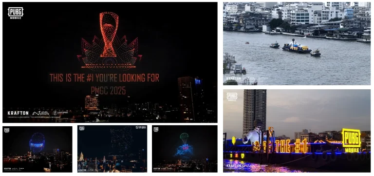 打造2025PMGC曼谷无人机秀,2000架编队复刻游戏画面,联动驳船巡航湄南河,融入泰语与本土设计,引爆社媒实现IP破圈。
